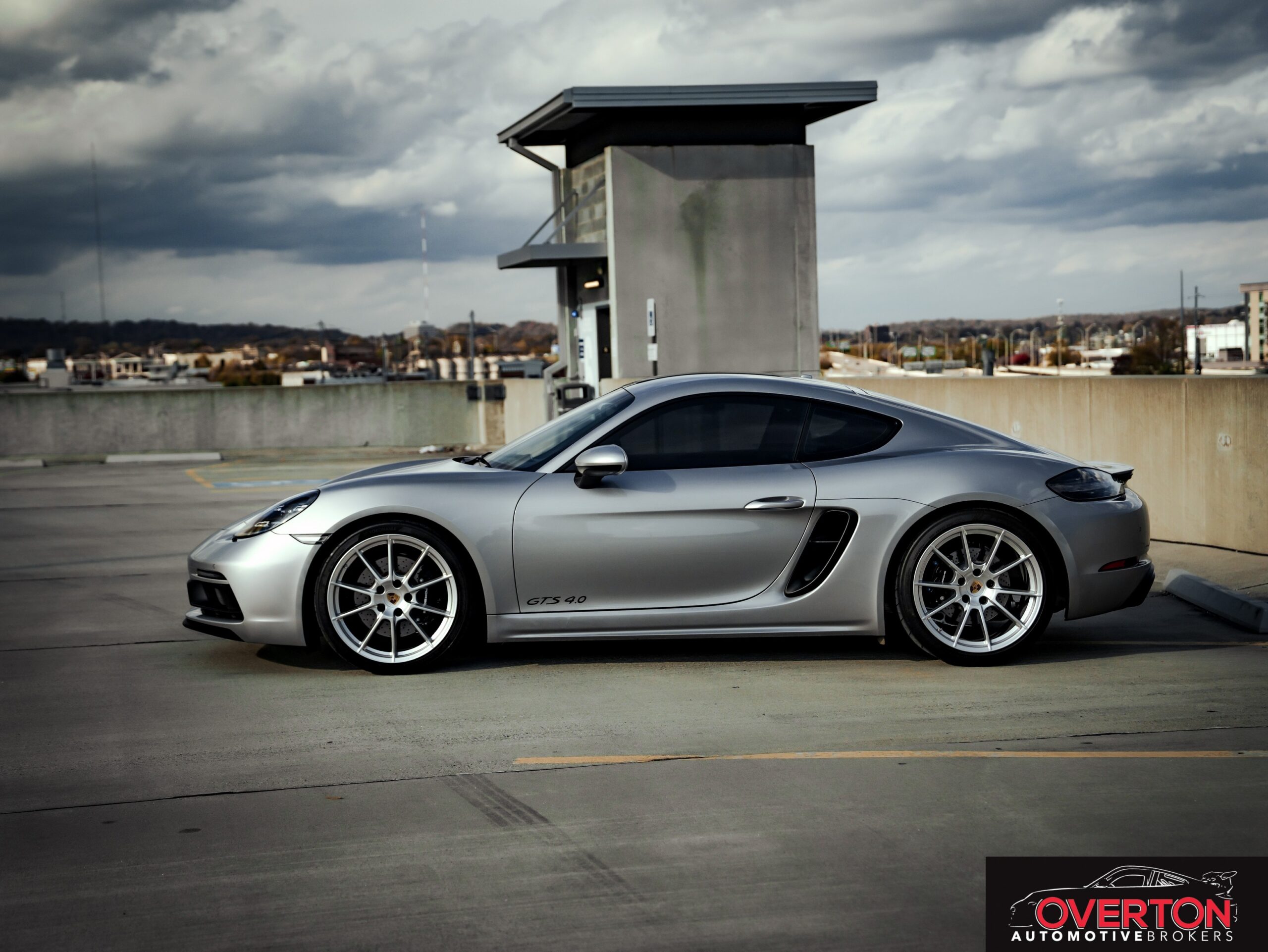 2022 Porsche 718 Cayman GTS 4.0L in GT Silver Metallic with Black and Bordeaux Red Interior.