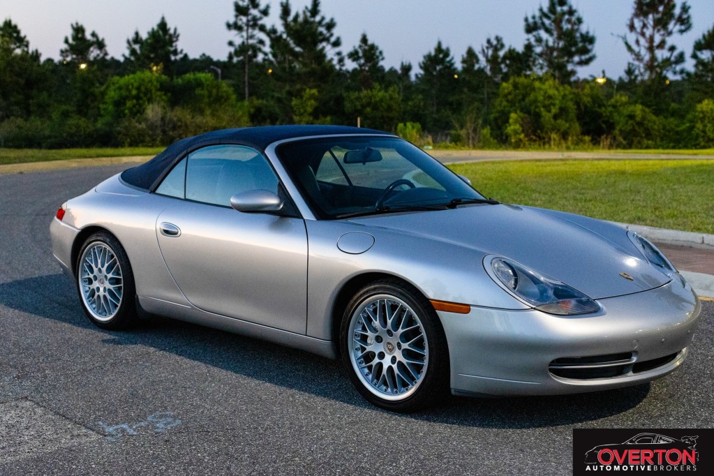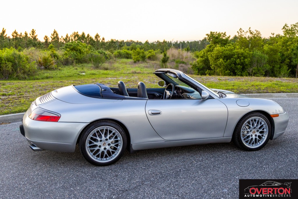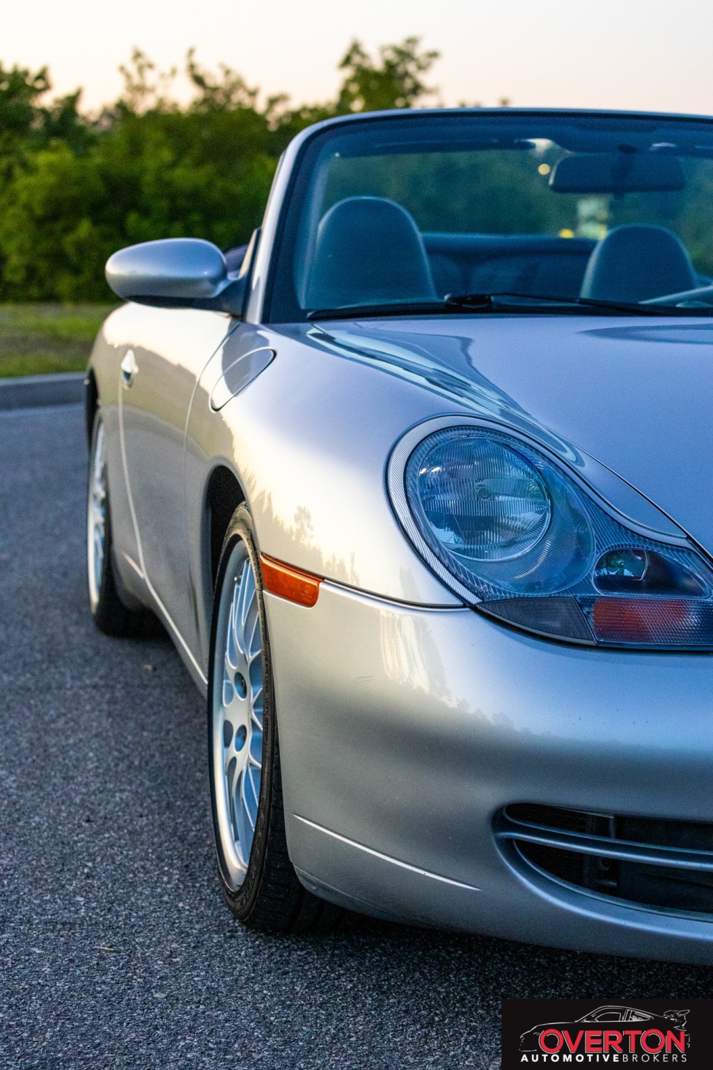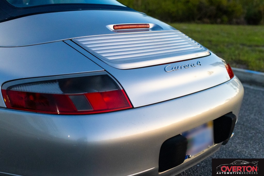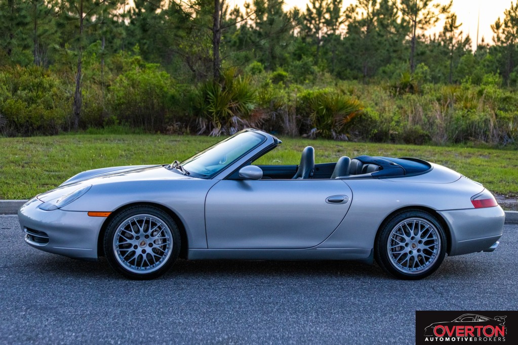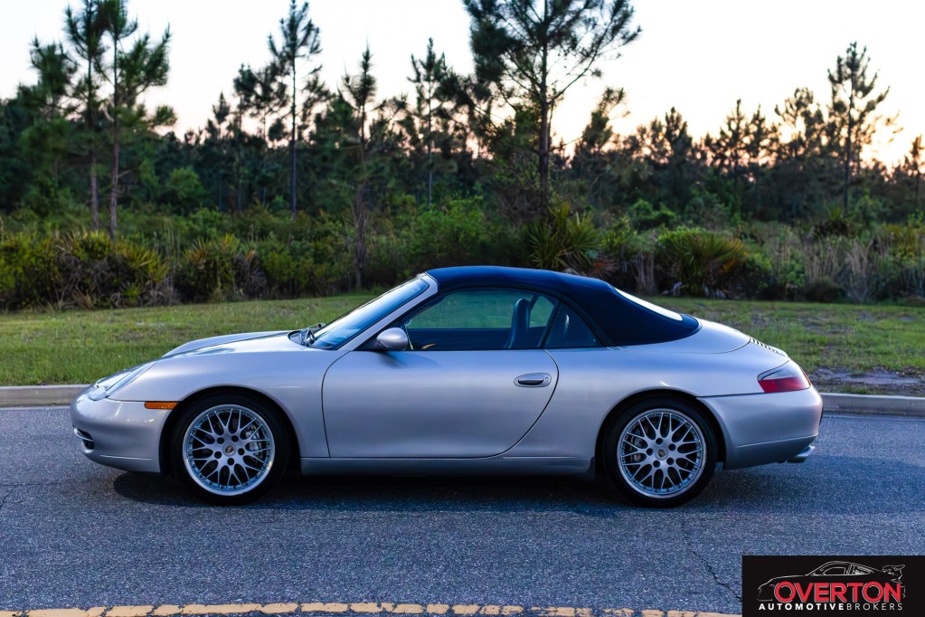 2000 Porsche 911 Carrera 4 Cabriolet in Arctic Silver Metallic with Metropol Blue Top and Metropol Blue Full Leather Interior.