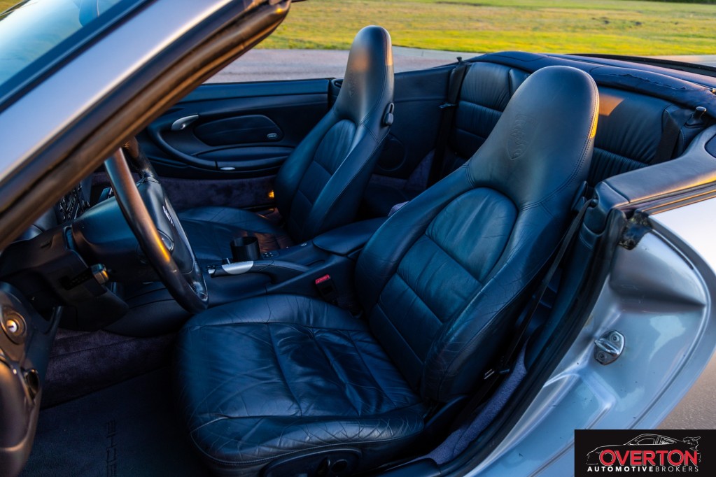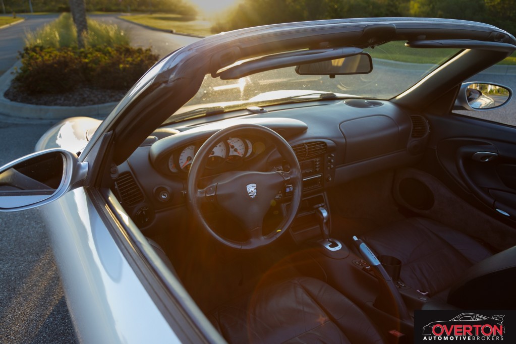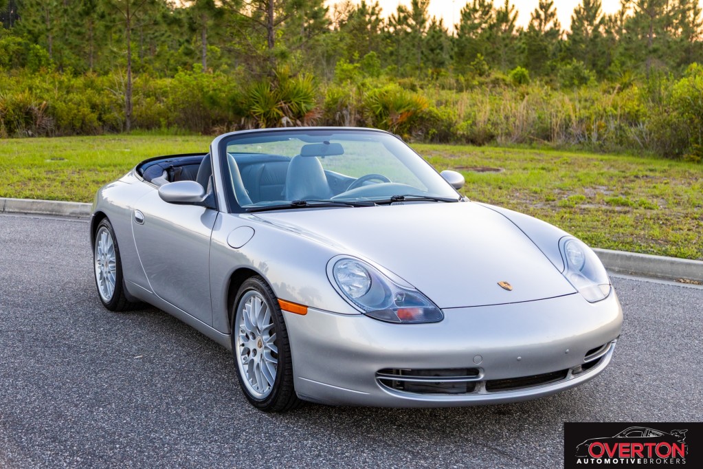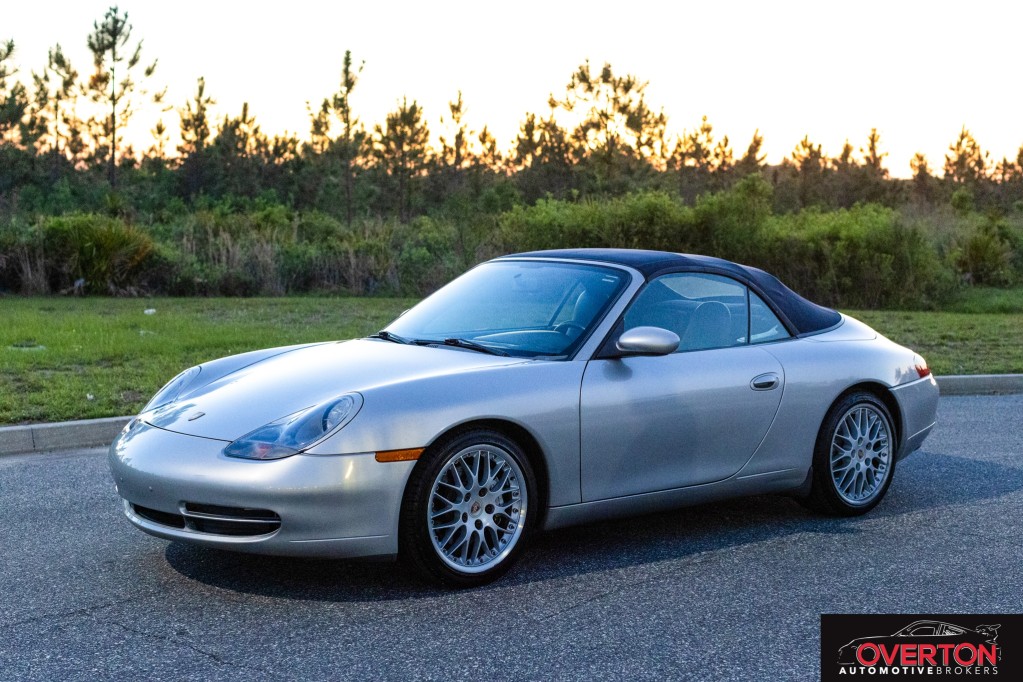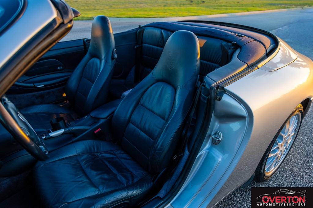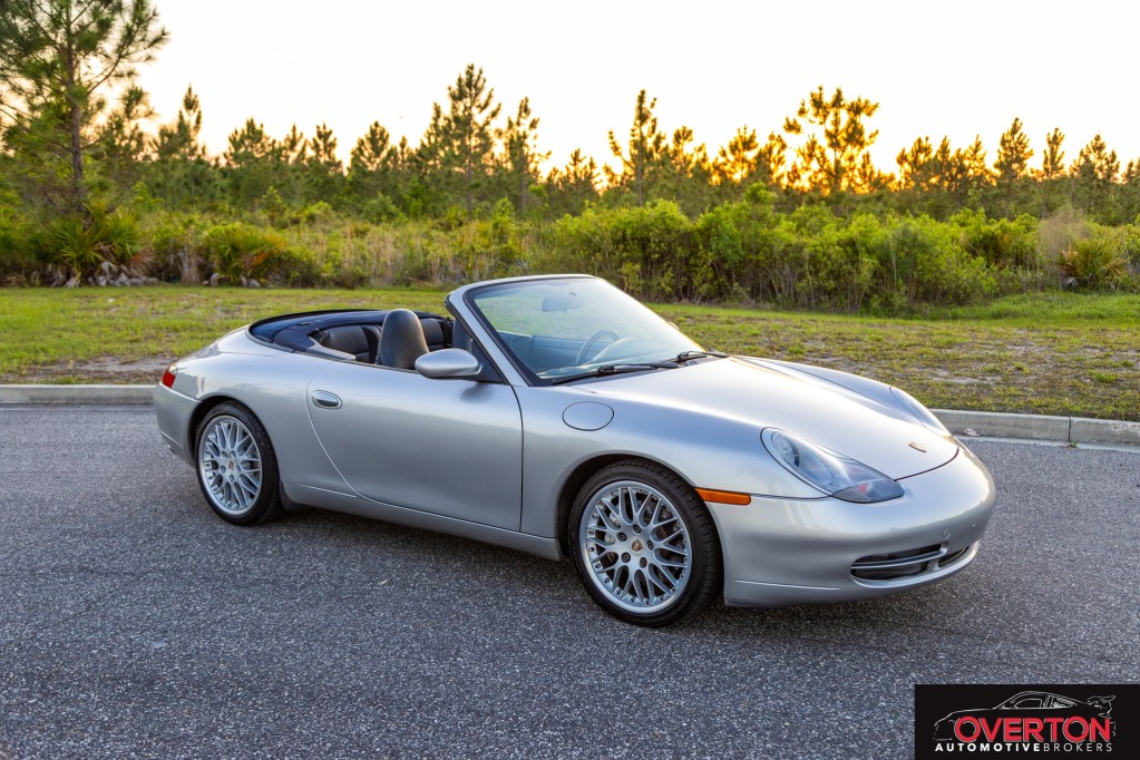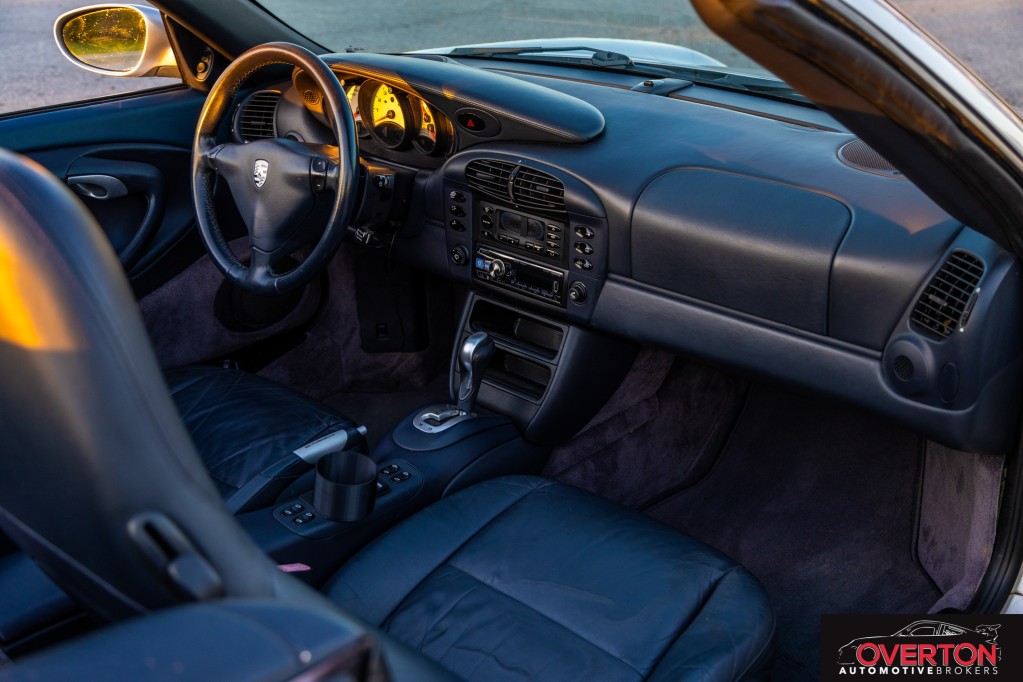 2000 Porsche 911 Carrera 4 Cabriolet in Arctic Silver Metallic with Metropol Blue Top and Metropol Blue Full Leather Interior.