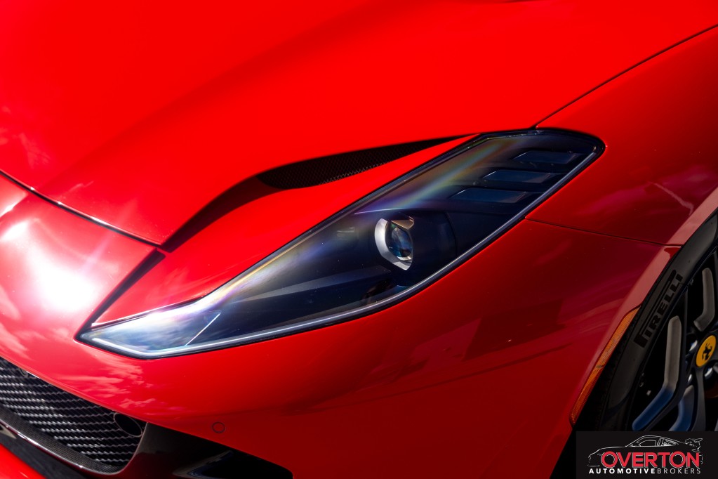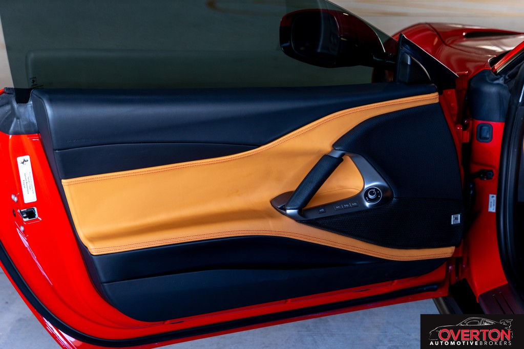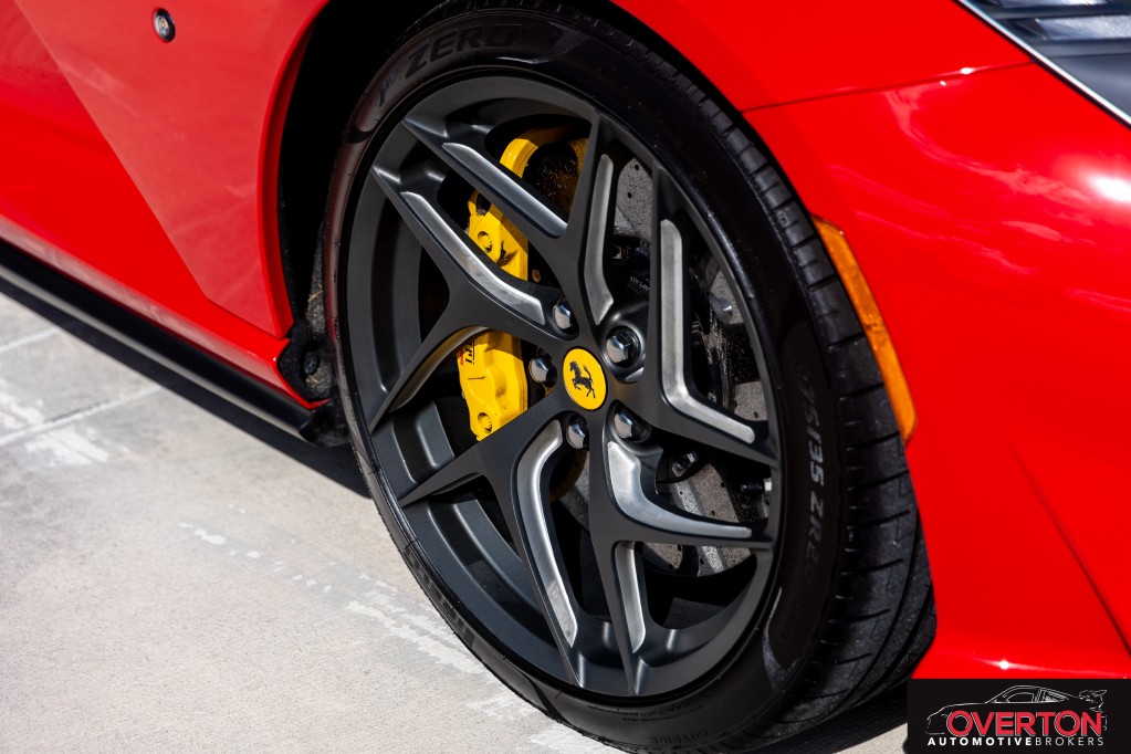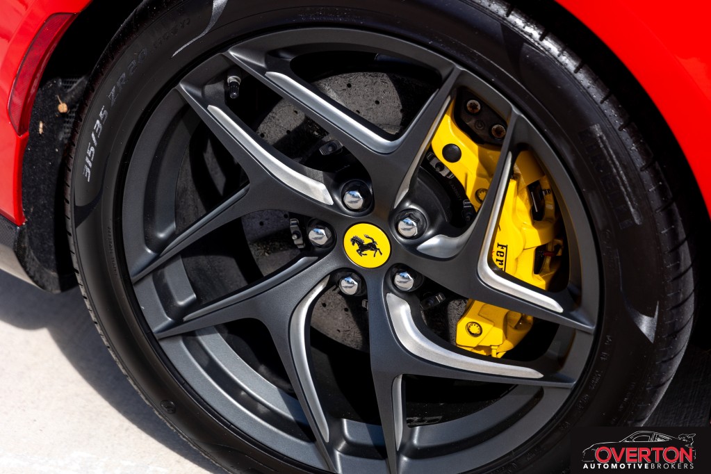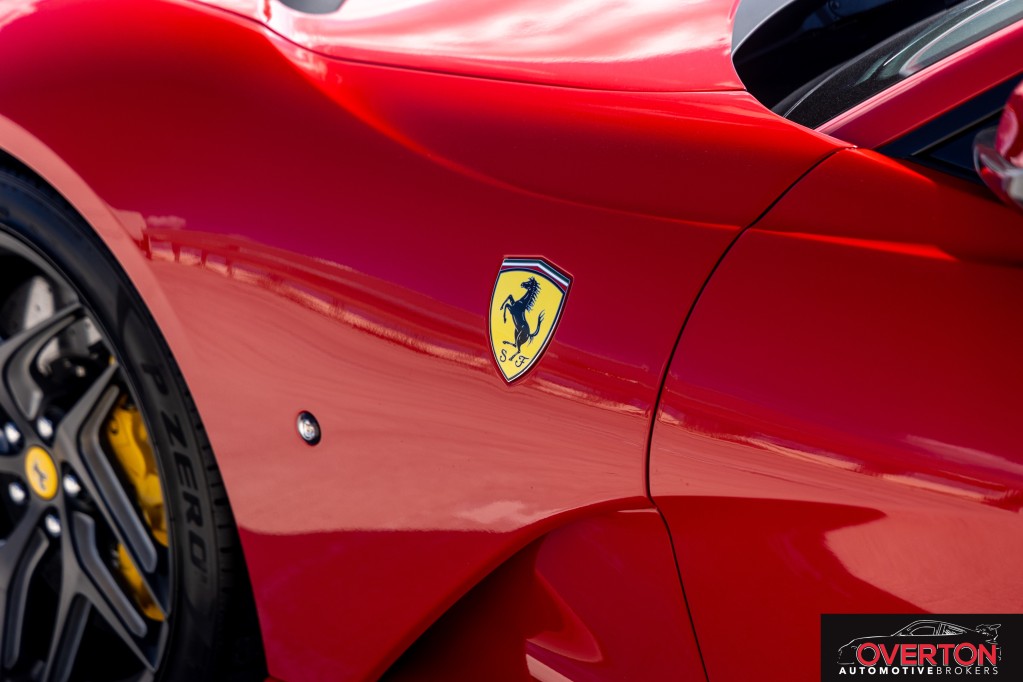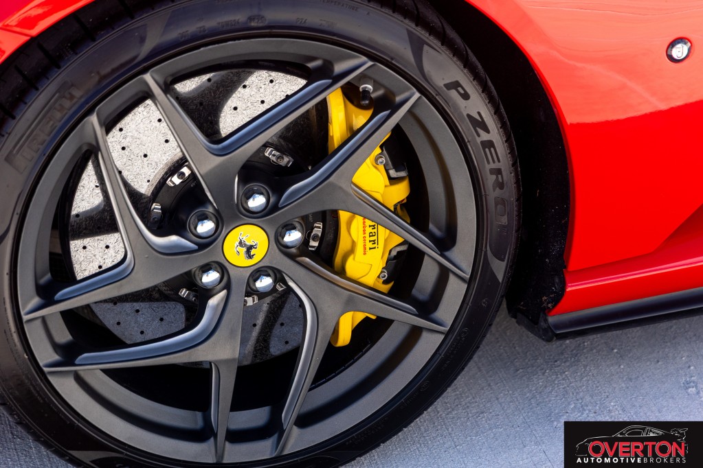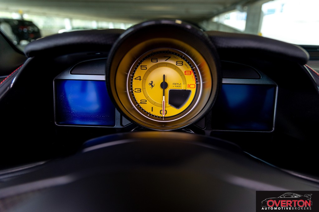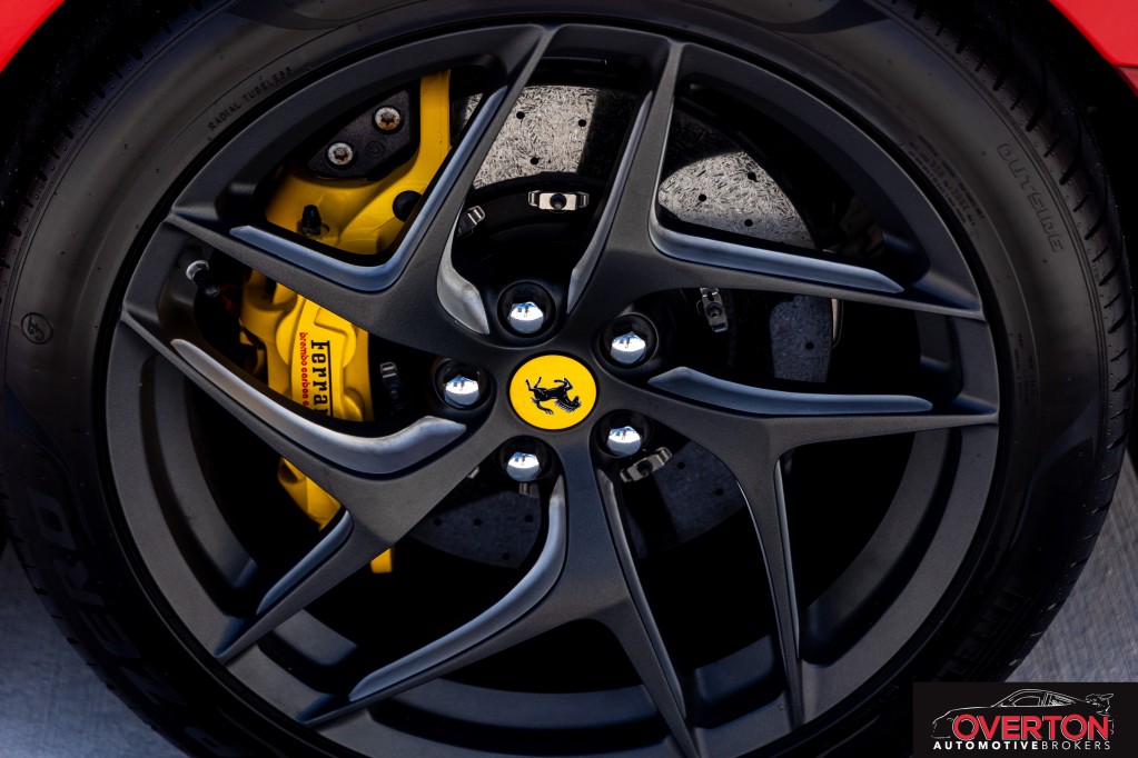 Options: Adaptive Front Lights with Static Bending Lights $3,375, Yellow Brake Calipers $1,519, Front Bumper Insert in Carbon Fiber $6,750, Rear Bumper Sides in Carbon Fiber $5,062, Carbon Fiber Driver Zone with LEDs $7,593, Carbon Fiber Central Bridge $2,869, Carbon Fiber Dashboard Inserts $7,593, Daytona Style Seats $4,134, Suspension Lifter $5,737, Horse Stitched on Headrest $1,266, Black Ceramic Exhaust Pipes $1,687, Scuderia Ferrari Shields $1,856, Passenger Display $5,906, 20-Inch Forged Painted Rims $6,243, Other Options $13,245 - High Emotion Low Emission, Parking Camera, Yellow Rev Counter, Full Electric Seats, Satellite Radio, High Power Hi-Fi- System Coloured Special Stitching O.R. Rosso and Cavallino Stitched on Headrest Rosso