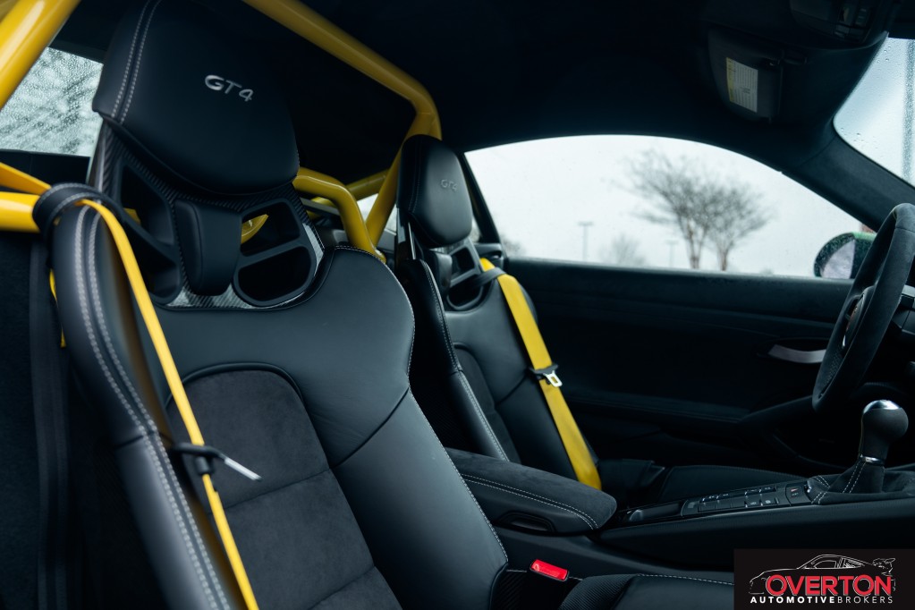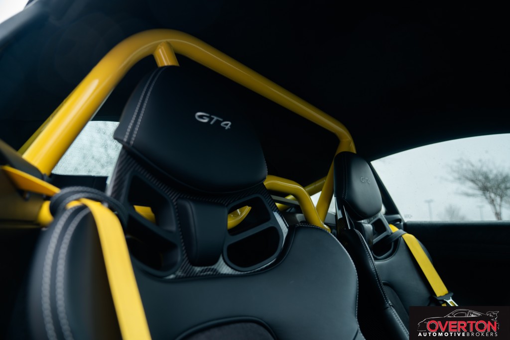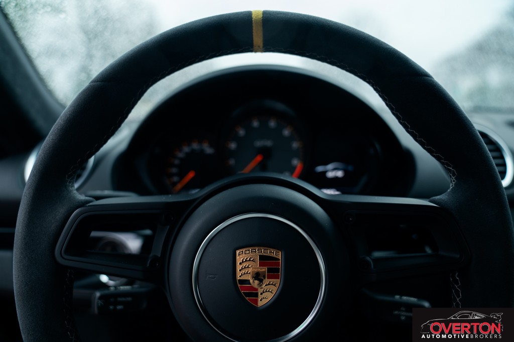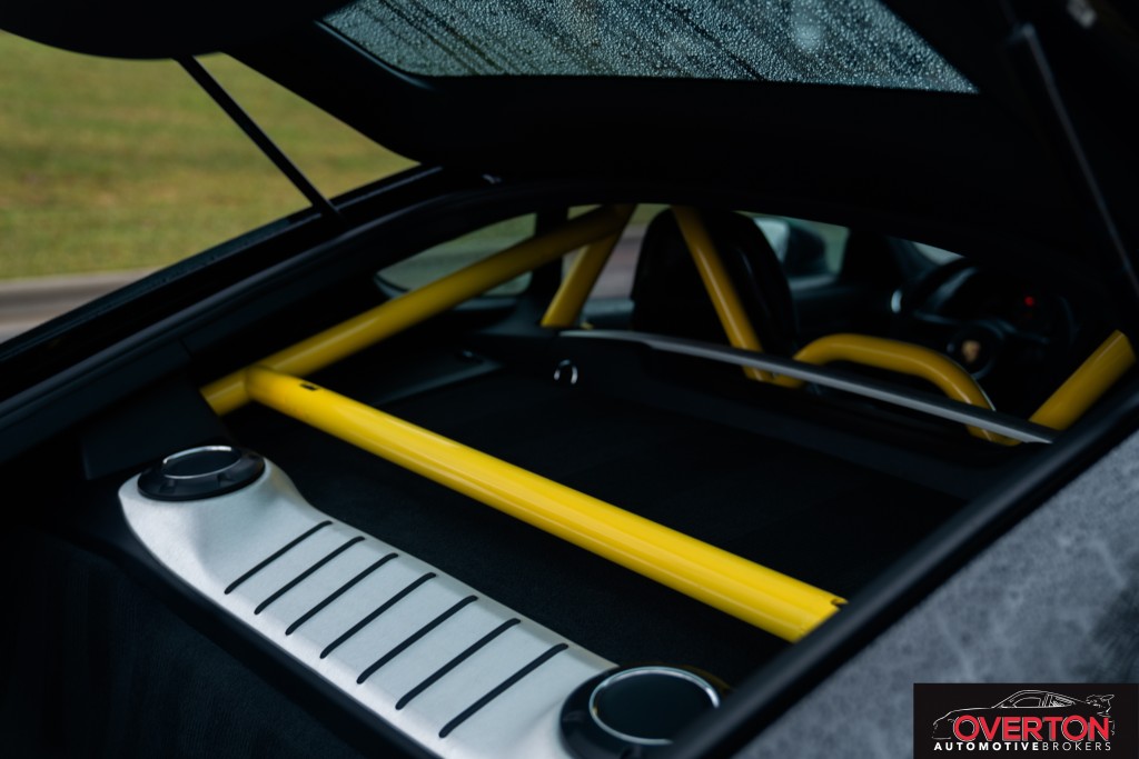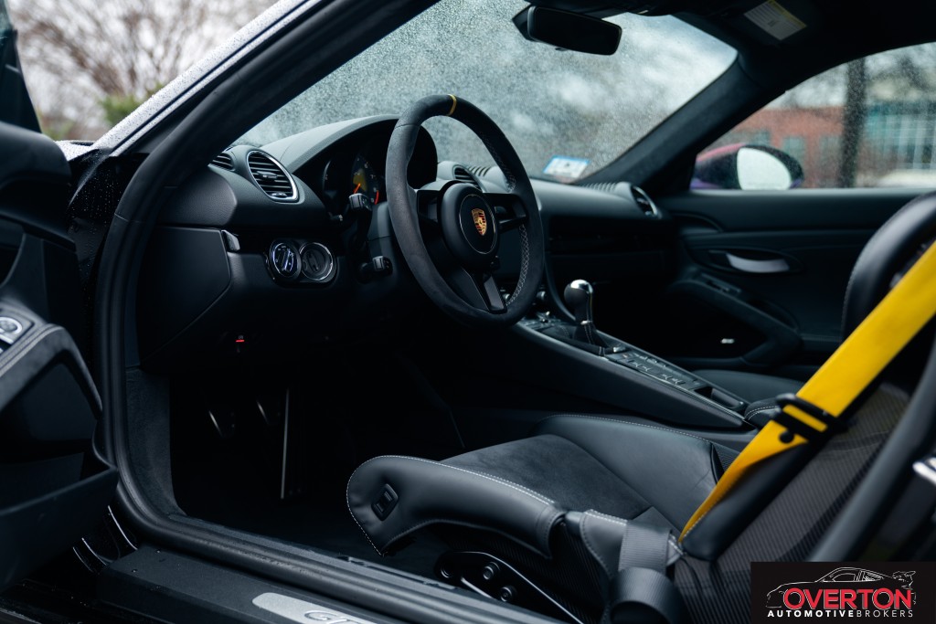 Standard Interior in Black with Alcantara and Silver Stitching, Porsche Ceramic Composite Brakes, Porsche Logo in Satin Black, Two Zone Automatic Climate Control, Light Emitting Diode Headlights with Porsche Dynamic Light System Plus, Steering Wheel with Twelve O'Clock Marker in Yellow, Bose Surround Sound System, Apple CarPlay including Siri, Black, Interior Trim Painted in Exterior Color in conjunction with Standard Interior, Full Bucket Seats, Wheels Painted in Satin Black, Seat Belts in Racing Yellow, Headlight Cleaning System Covers Painted in Exterior Color, Included First Year Ten Thousand Mile Maintenance