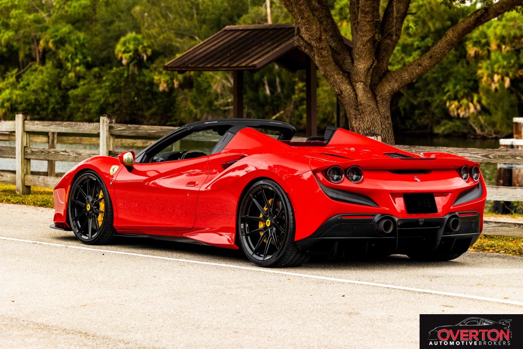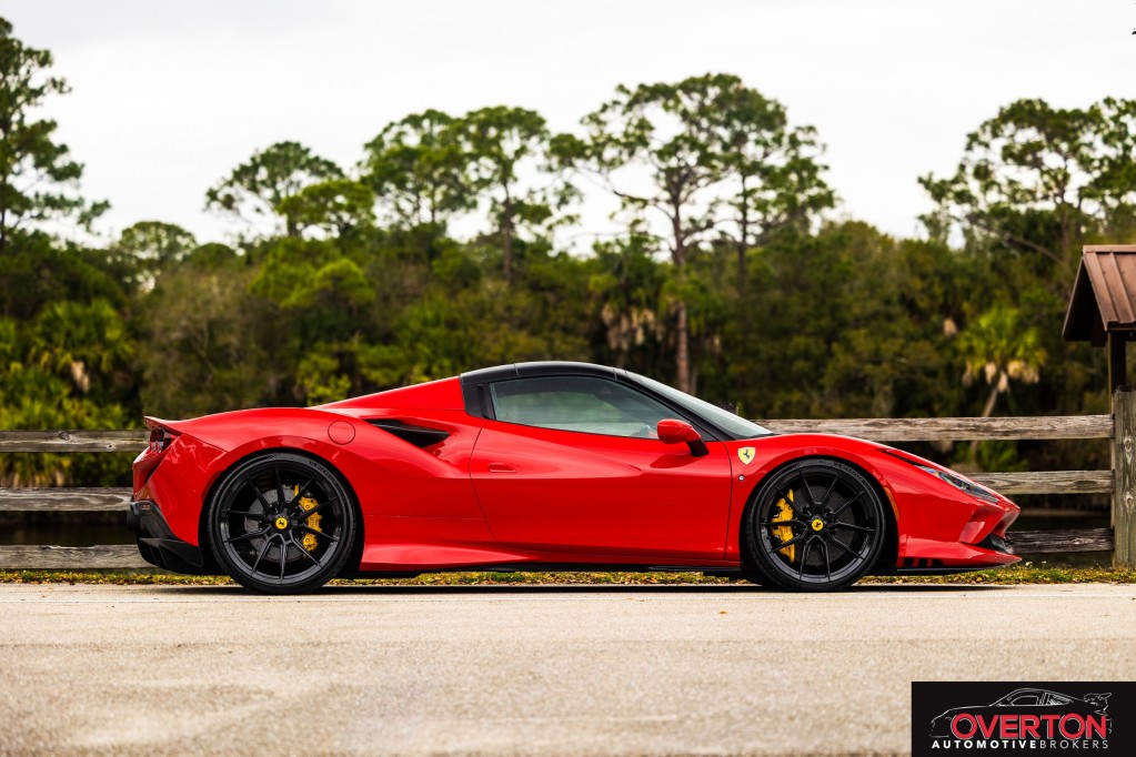 2022 Ferrari F8 Spider in Rosso Corsa with Nero Interior. Located in Stuart, FL. Only 1419 miles. PPF on Entire Front and Sides. Ceramic Coated. Novitec NF10 Gloss Black 21 and 22 inch wheels with Pilot Sport 4S Tires installed in April 2025. Novitec lowering Spring Kit