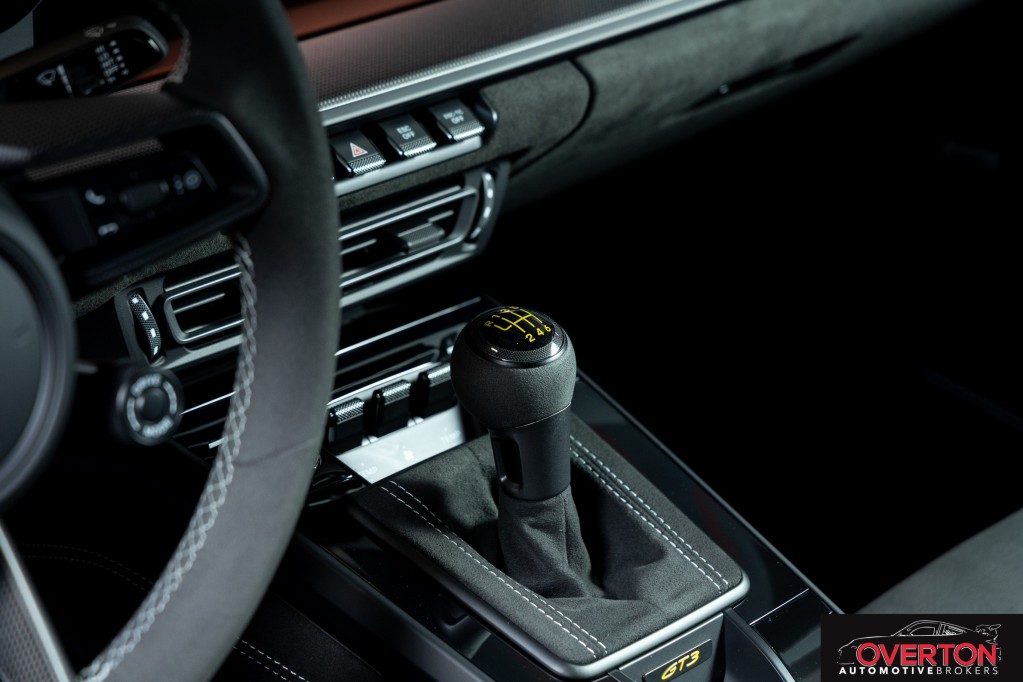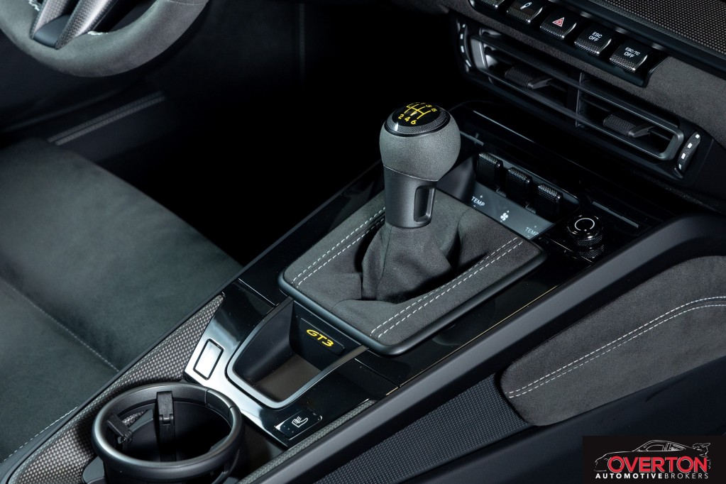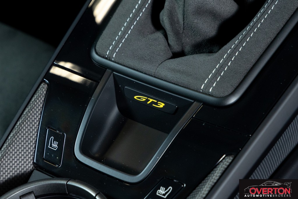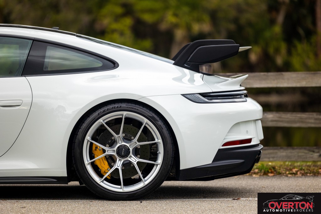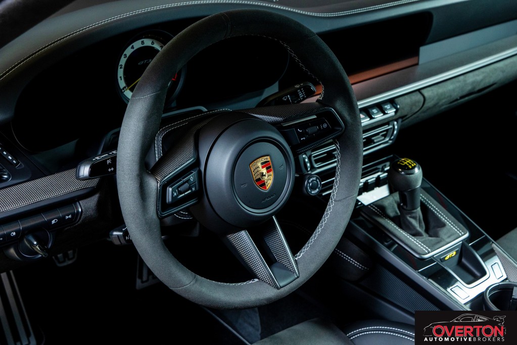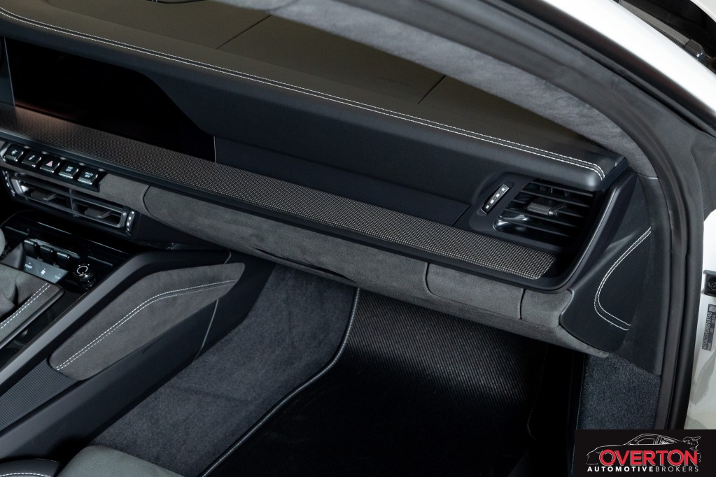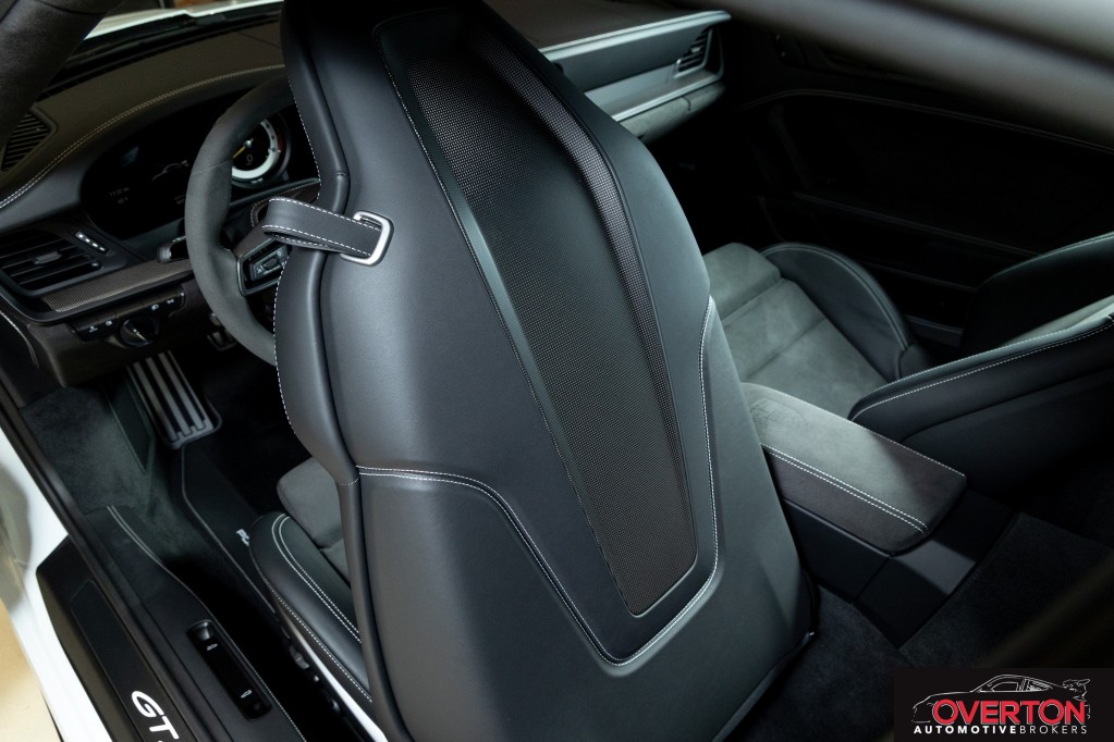 Leather/Race-Tex Interior in Black w/ GT Silver Stitching, Color Selection for Stitching in Deviated Color, Extended Range Fuel Tank (23.7 gal.), PCCB with Calipers in Yellow, Dashboard with Deviated Stitching, Rear Side Panel with Deviated Stitching (Coupe Only), Center Console Lid with Deviated Stitching, Knee Pad with Deviated Stitching, Door Panel with Deviated Stitching, Steering Column Casing in Leather, Front Axle Lift System, Exclusive Design Fuel Cap, Seat Belt Outlet Trims in Race-Tex, Carbon Fiber Roof, Extended Dashboard and Door Panel Package in Leather, Extended Interior Trim in Matte Carbon Fiber, Sun Visors in Race-Tex, Center Console Lid in Race-Tex with Porsche Crest, Exterior Mirror Upper Trims in Carbon Fiber, Deviated Stitching Interior Package, Central Tachometer in White, ParkAssist (Rear), LED-Matrix Design Headlights in Black incl. PDLS+, Chrono Package with Preparation for Lap Trigger, Preparation for Porsche Dashcam (Front and Rear), Exclusive Design Taillights, BOSE Surround Sound System, Carbon Fiber Floor Mats with Leather Edging, Extended Leather Package, Seat Belts in Silver Grey, 6-Speed GT Sport Manual Transmission, Auto-Dimming Mirrors with Integrated Rain Sensor, Pedals and Footrest in Aluminum, Adaptive Sport Seats Plus (18-way), Window Triangle Trims in Carbon Fiber, Ambient Lighting, Under Door Puddle Light Projectors, Chrono Stopwatch Dial in White, Included First Year / 10,000 Mile Maintenance