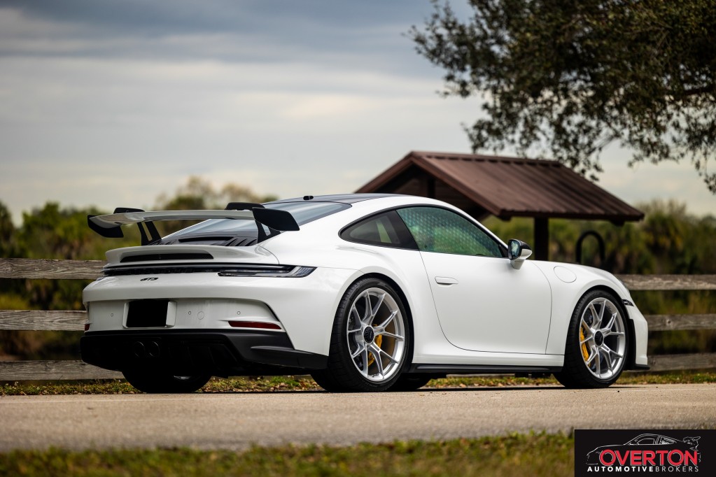 2024 Porsche 911 GT3 in White with Black Leather and Race-Tex Interior with 6-Speed Manual. Located in Stuart, FL. Only 1917 miles. Ceramic Coated. PPF on Entire Front and Sides