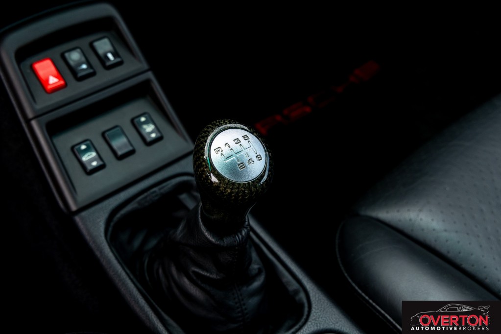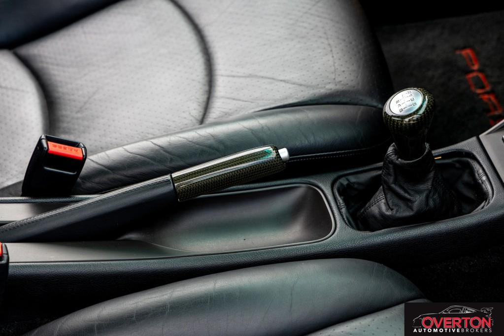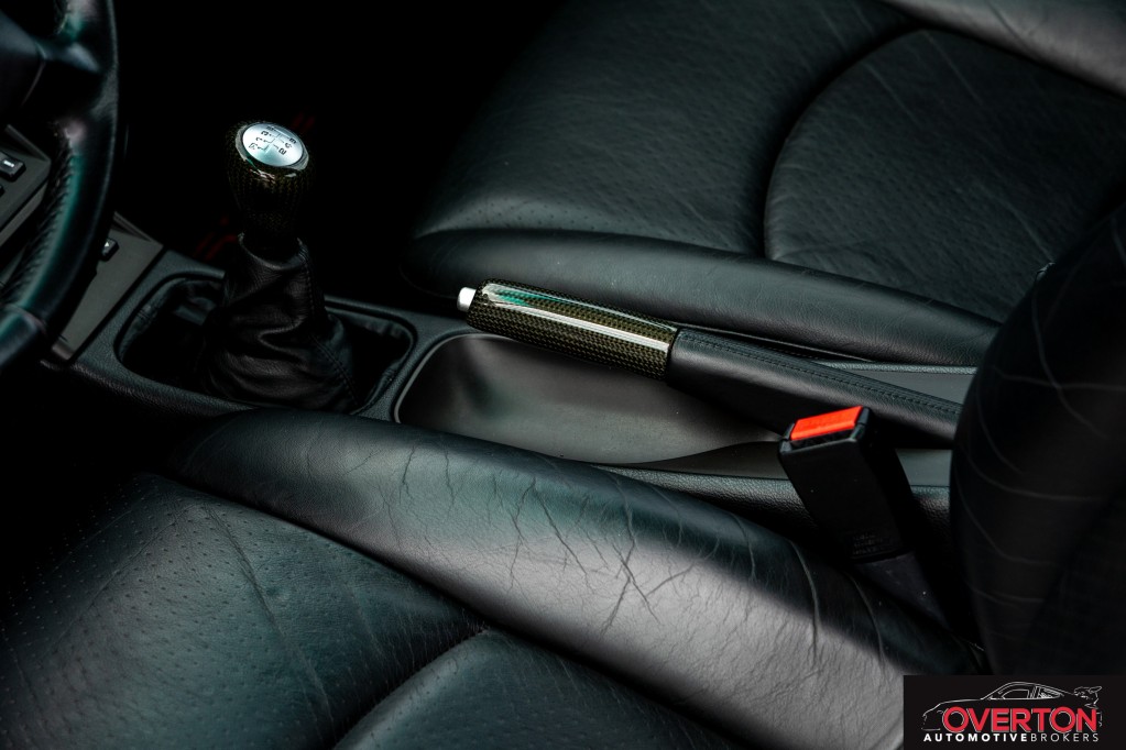 Black leather interior with carbon fiber trim for a modern yet classic feel